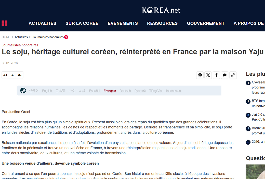 Le soju, héritage culturel coréen, réinterprété en France par la maison Yaju
